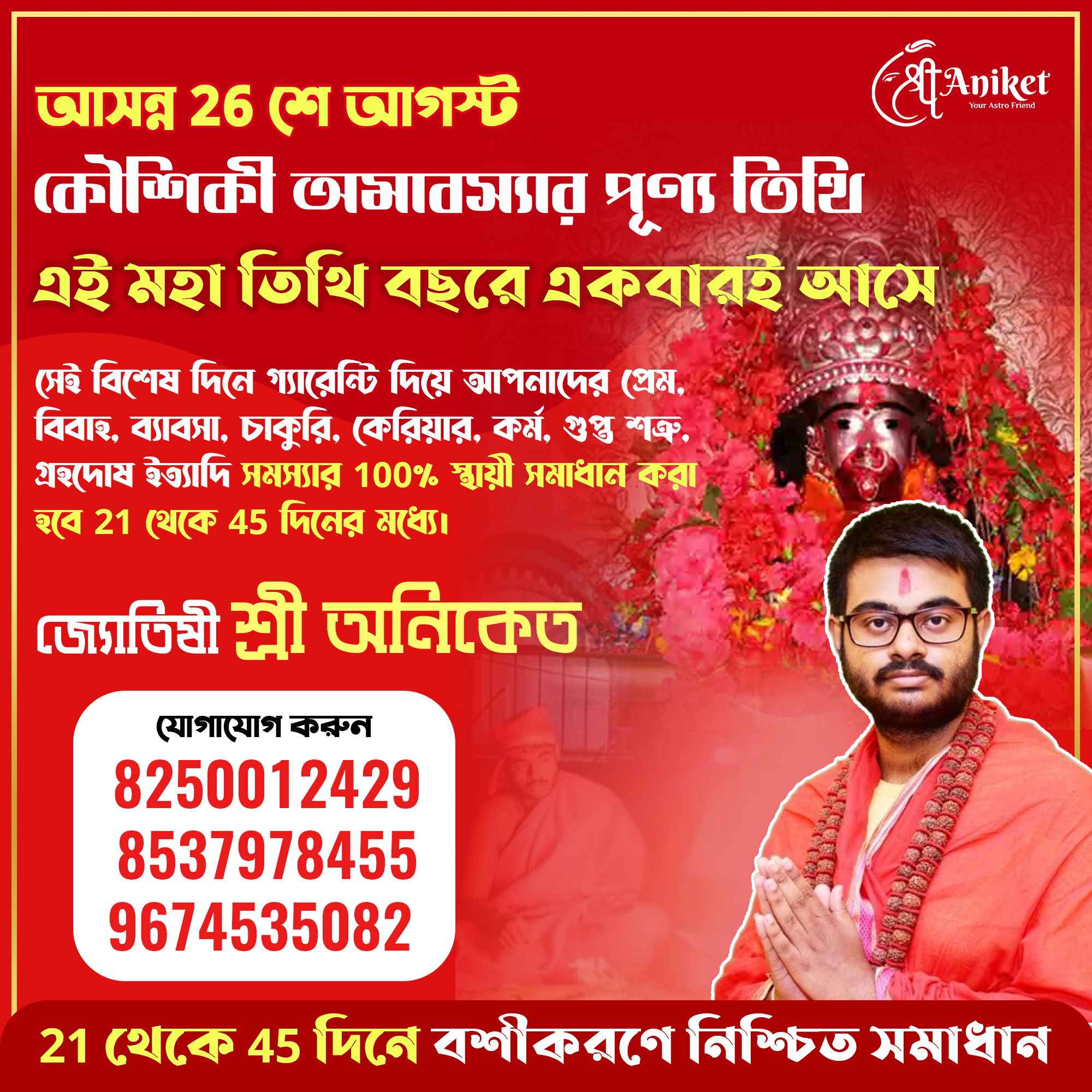 আগামী 26 শে আগস্ট আসন্ন কৌশিকী অমাবস্যায় মুক্তেশ্বরী মায়ের মন্দিরে হবে মহা যজ্ঞ সেদিন হবে আপনারা সকল আশা পূরণ।