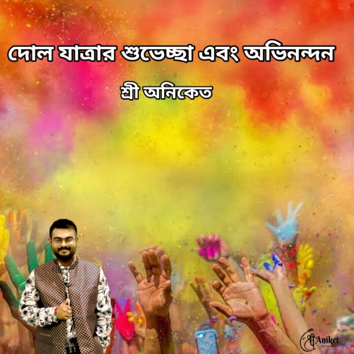 আজ আনন্দের রঙে বা প্রেমের রঙে নিজেকে রাঙিয়ে নেয়ার ও নিজের প্ৰিয়জনদের রাঙিয়ে নেয়ার দিন।সবাইকে জানাই দোল যাত্রা ও হোলির অনেক শুভেচ্ছা ও অভিনন্দন|ভালো থাকুন|সুস্থ থাকুন। জীবনের প্রতিটা মুহূর্ত হোক রঙিন।শুভ যাত্রা।