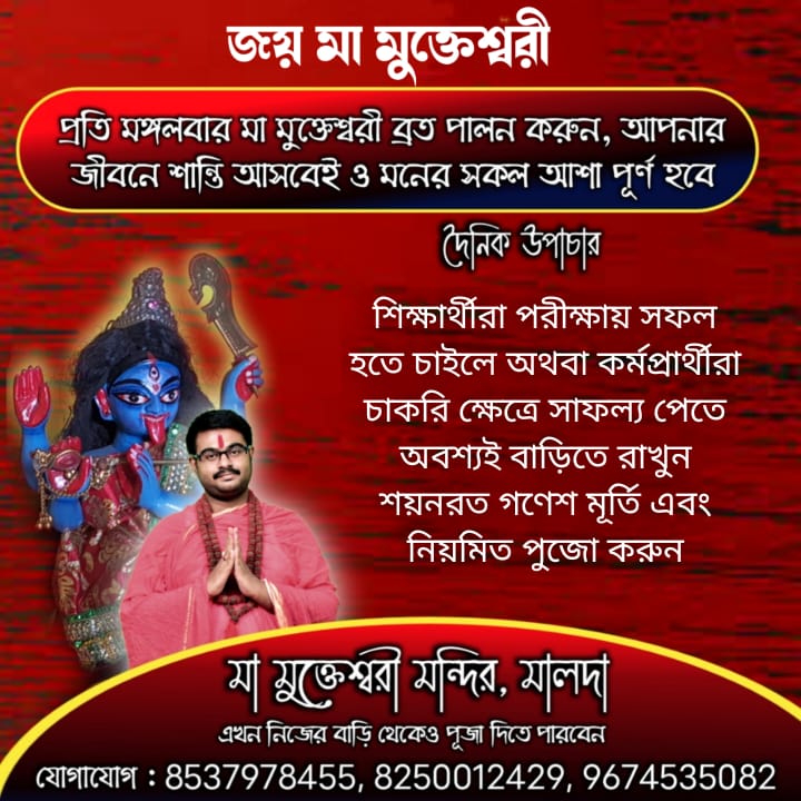 উপাচার দৈনিক উপাচার : 16 জানুয়ারি 2022 January 16, 2022 232 Share Facebook Twitter WhatsApp Email Print জয় মা মুক্তেশ্বরী